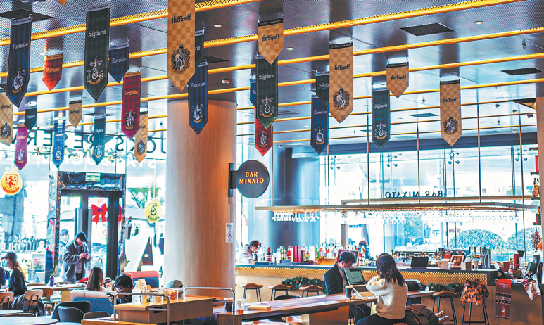 View of a Starbucks Harry Potter-themed store at Wujiaochang Greenland Summit, Shanghai, on Friday. CHINA DAILY