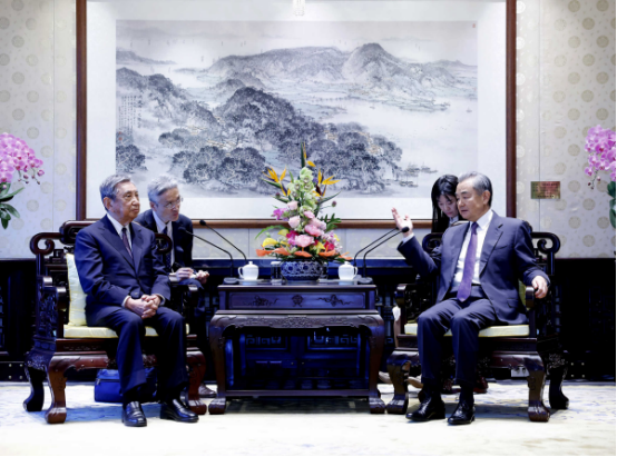 On June 4, 2025, Member of the Political Bureau of the CPC Central Committee and Director of the Office of the Central Commission for Foreign Affairs Wang Yi met with President of the Japanese Association for the Promotion of International Trade (JAPIT) Yohei Kono in Beijing.