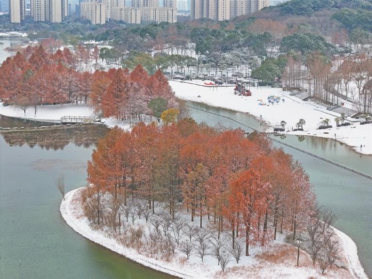 1月20日,我市迎來降雪天氣,雪后的江城銀裝素裹,分外妖嬈。圖為雪后的神山公園。