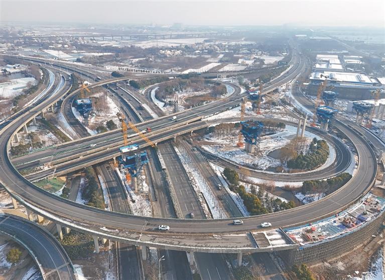 近年來,我市加快構(gòu)建全國性綜合交通樞紐,推進(jìn)擁江發(fā)展,優(yōu)化江北新區(qū)路網(wǎng)布局。目前蕪合高速二壩互通施工正酣,項目建成后將實現(xiàn)蕪合高速、長江三橋與過江隧道快速互聯(lián)互通,大幅提升江北新區(qū)對外通達(dá)能力。圖為1月22日記者拍攝的施工現(xiàn)場。記者 楊大偉 攝