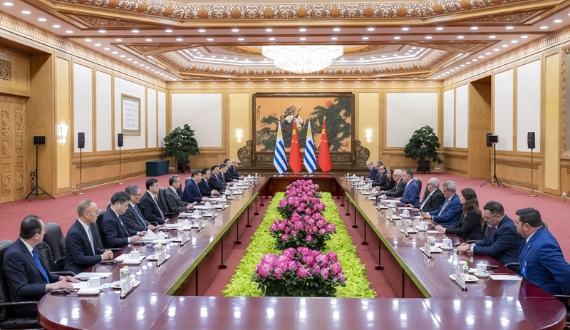 習近平強調,中烏兩國要繼續堅定支持彼此核心利益和重大關切,密切各層級、全方位友好交往,加強治國理政經驗交流,不斷深化戰略互信。中共二十屆四中全會通過“十五五”規劃建議,為未來5年中國經濟社會發展擘畫藍圖,也為包括烏拉圭在內的各國提供更多機遇。雙方要加強發展戰略對接,深化經貿、金融、農牧業、基礎設施建設、信息通信等合作,挖掘綠色發展、數字經濟、人工智能、清潔能源等新興領域合作潛力,推動經濟增長轉型升級。中國和烏拉圭人民有著天然親近感,雙方要持續深化文化、教育、體育、媒體、地方等交流,便利人員往來,促進民心相通。