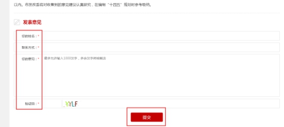 ④在征集頁底部填寫必要選項、征集意見,輸入驗證碼點擊提交