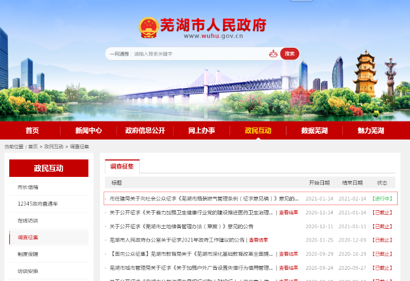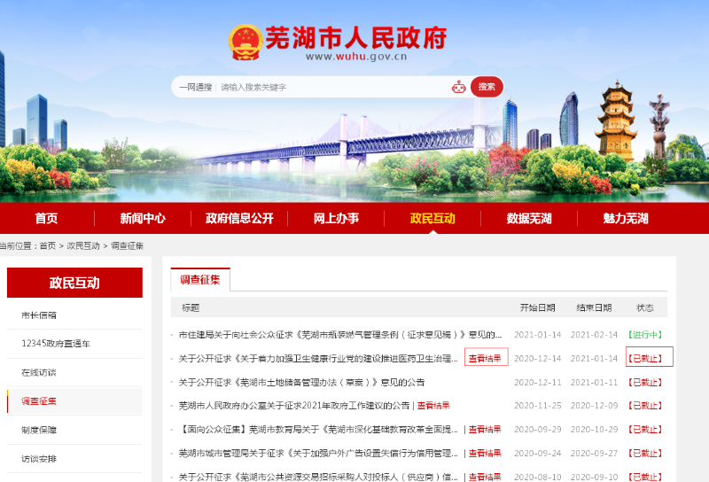為貫徹落實《重大行政決策程序暫行條例》(國令第713號),引導廣大群眾廣泛有序參與政府決策,讓重大行政決策過程成為集思廣益、凝聚共識的過程,強化行政權力制約和監督,進一步提升政府公信力。根據國務院辦公廳《關于印發政府網站發展指引的通知》(國辦發〔2017〕47號)和省政府辦公廳《關于進一步加強政府網站信息內容建設的實施意見》(皖政辦〔2015〕12號)要求,特在市政府門戶網站開設“民意征集”欄目。廣泛傾聽公眾意見建議,接受社會的批評監督,搭建政府與公眾交流的“直通車”為科學決策做參考。