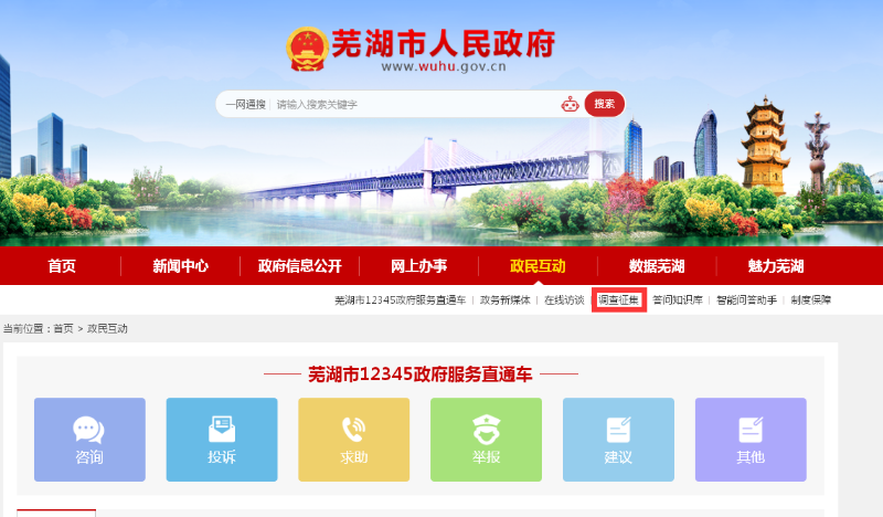 ②通過政民互動頻道點進入“調查征集”欄目